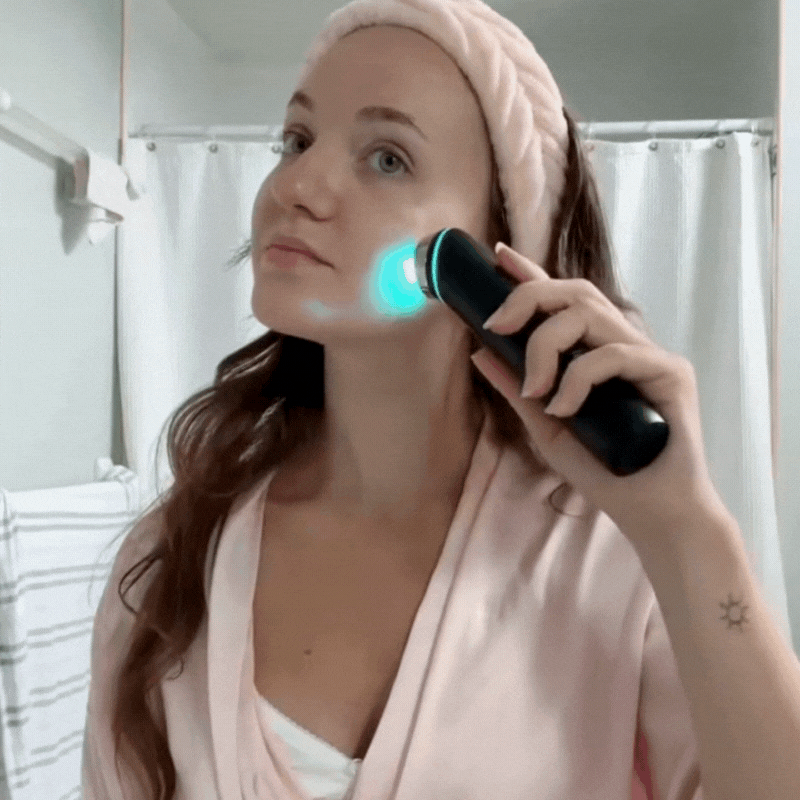 It uses LED light therapy and microcurrent technology to rejuvenate skin. Each of the 5 light colors targets different concerns — red boosts collagen, blue fights acne, and others help brighten, calm, and firm the skin.